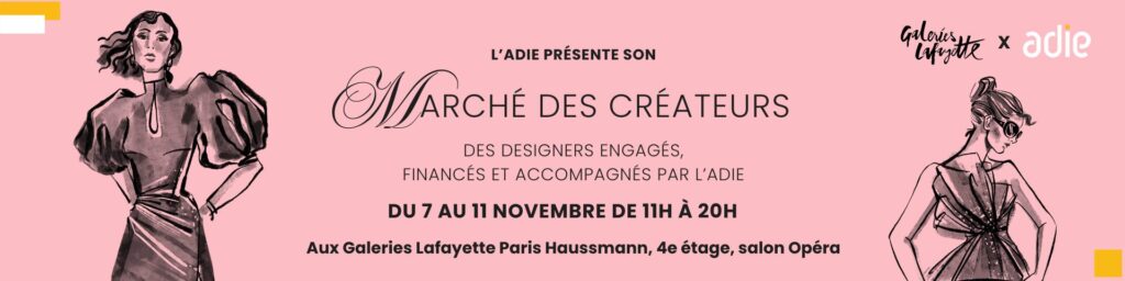 Les visiteurs pourront découvrir les créations d’une quinzaine de designers éthiques financés par l’Adie à l’occasion d’un marché des créateurs installé au 4ème étage du magasin, dans le Salon Opéra. Luxe, décorations, robes de mariées, accessoires… un marché créatif et éphémère pour rencontrer les créateurs et plonger dans l’histoire que chacun raconte à travers ses pièces uniques. Une belle occasion de trouver des idées de cadeaux de Noël avant l’heure ou de préparer les fêtes avec des présents originaux, porteurs de sens et solidaires.