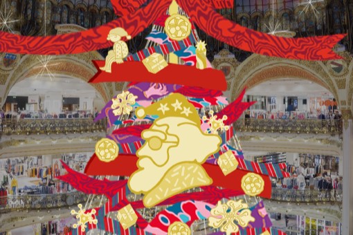 Cette année, les Galeries Lafayette lui ont confié leur univers de Noël. L’artiste de renom signe des tableaux foisonnants et colorés dans le grand magasin. Les illustrations et les personnages qu’elle a inventés peuplent les vitrines, les papiers cadeaux et la sacherie de la saison des fêtes.