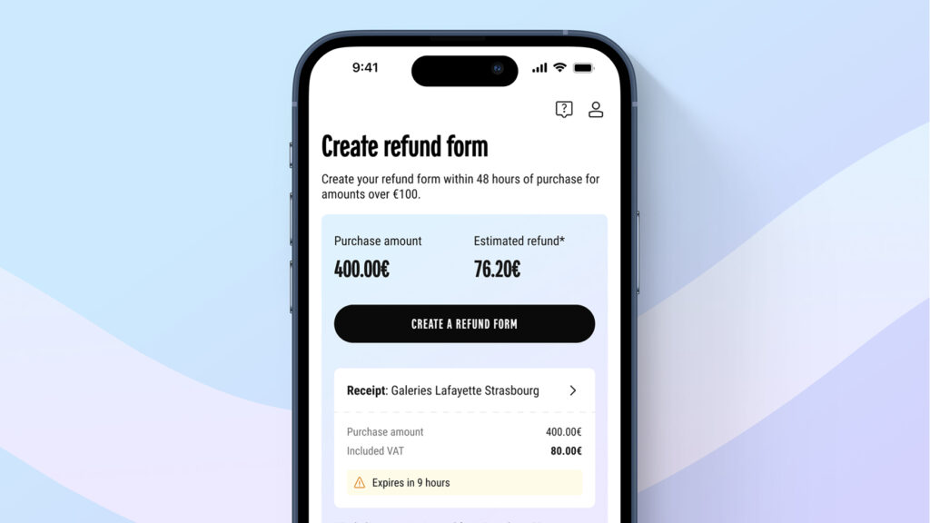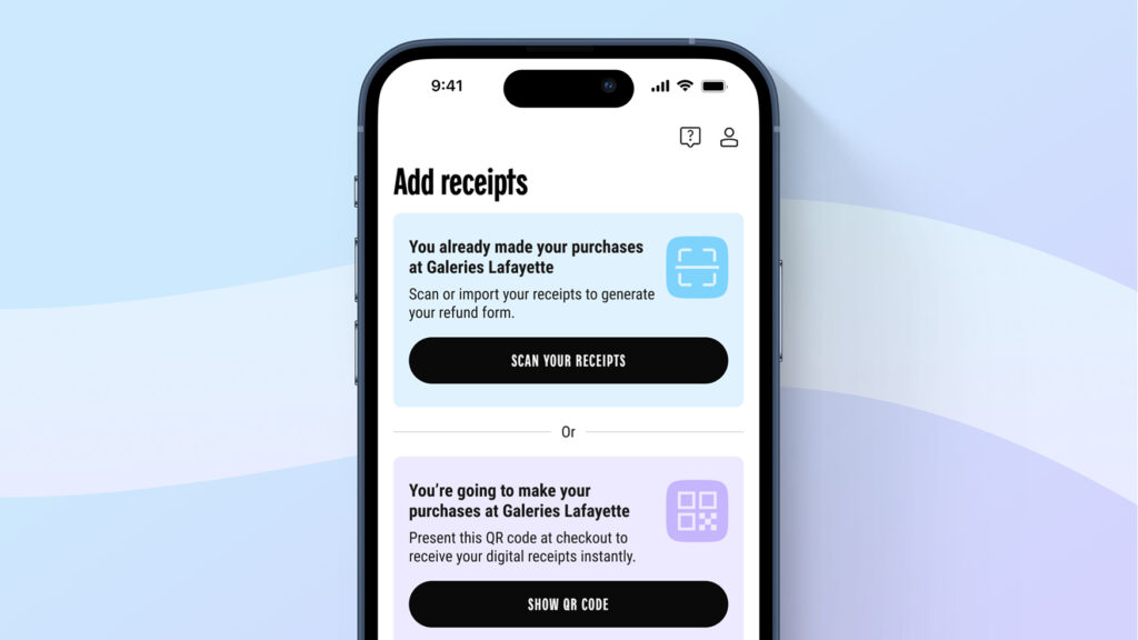 消費達100,01歐元,您便可以透過應用程式享受12%(不含銀行手續費)的增值稅退稅服務。透過我們的創新數碼方案,只需幾個步驟,即可在手機上輕鬆辦理退稅單。隨時掌握退稅進度,方便快捷。 Galeries Lafayette 推出的 GoTaxFree 提供8種語言選擇,立即下載,讓您的旅程更輕鬆,退稅更簡易!
